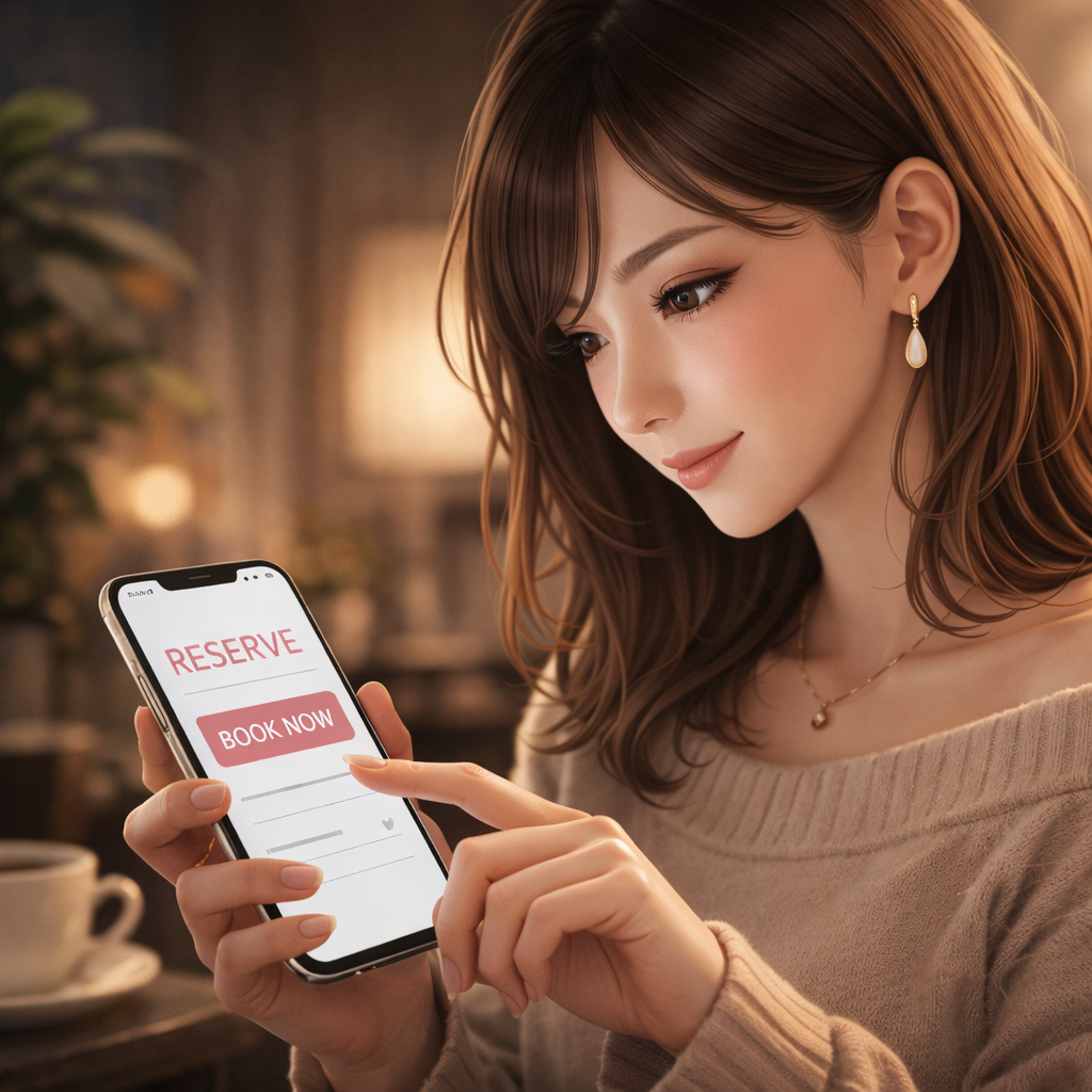 待ち合わせの場所に着きましたら到着のご連絡お客様の服装髪型の特徴をお知らせ下さい。